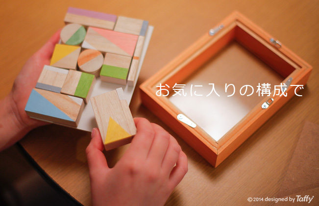 中身の組みかえができるのでパズル感覚で柄を簡単に変更できます